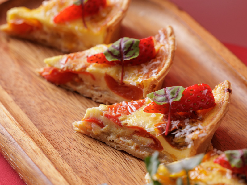 また、ハスカップ ザ・ガーデン調理長 山本昭典は、いちごのピッツァやサラダなど、前菜やメイン料理でいちごを使用したメニューを提供。“甘いだけじゃない”いちごの世界をご体感ください。