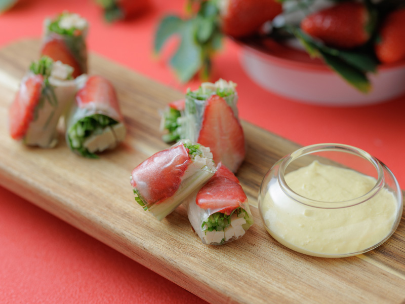 ・いちごと蒸し鶏の生春巻き サラダ仕立てチーズソース
